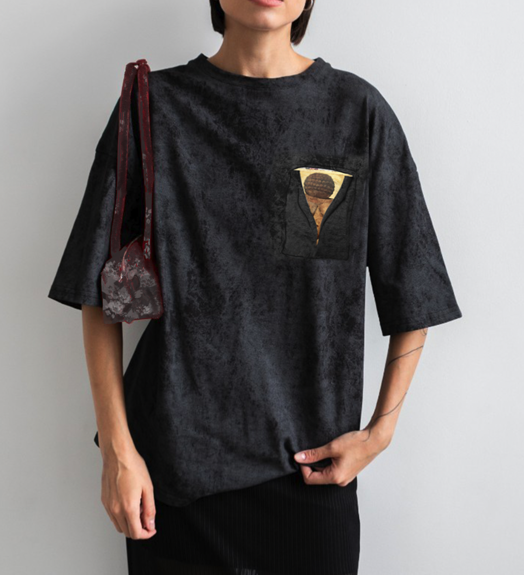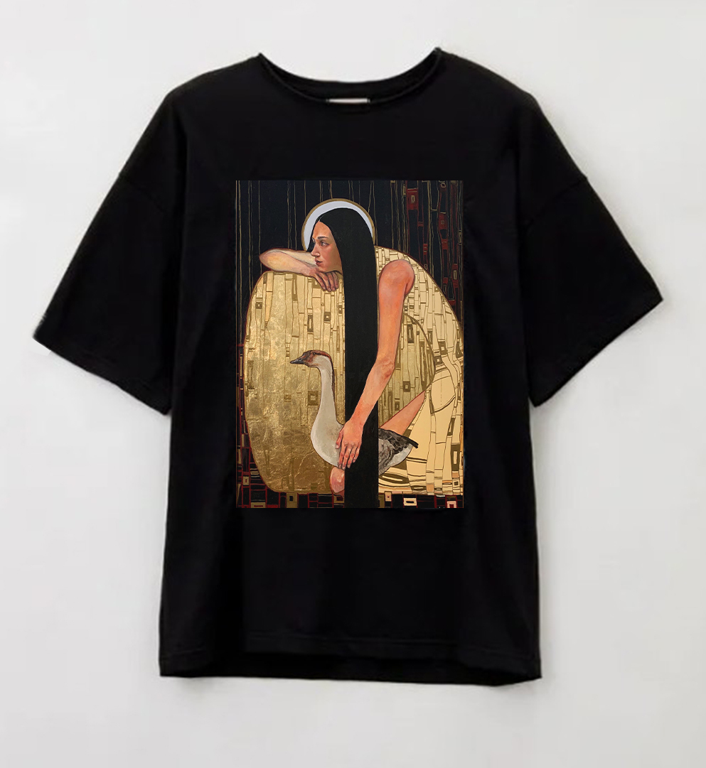 ONE SIZE / OVER SIZE состав: 92% хлопок, 8% эластан рисунок отпечатан на искусственном шелке и вшит в полотно футболки на спине шелковый патч с подписью автора картины сделано в России